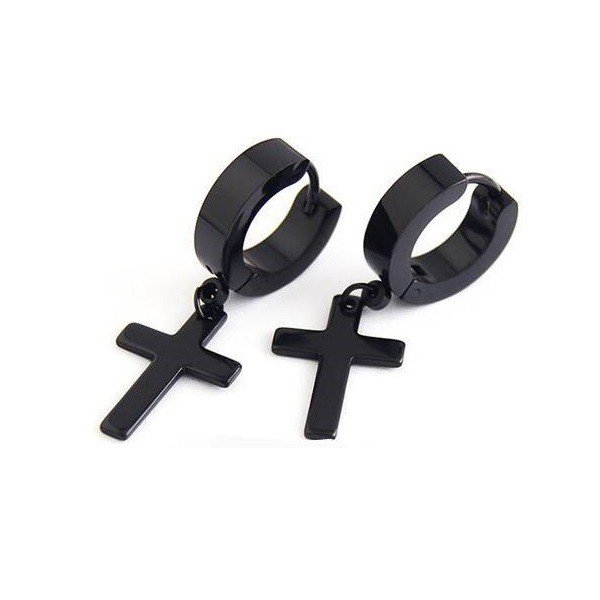 Náušnice z nehrdzavejúcej ocele s čiernym krížikom spájajú duchovný symbol s moderným štýlom. Vhodné aj pre citlivé uši.