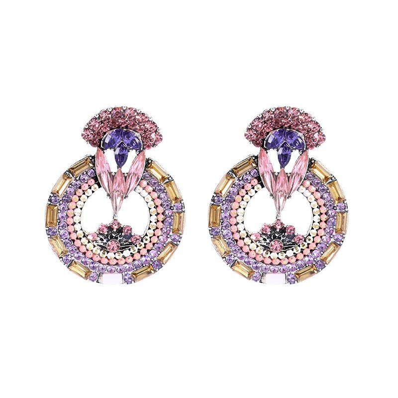 💎 Luxusný vzhľad – kombinácia kruhového dizajnu a trblietavých fialových kameňov