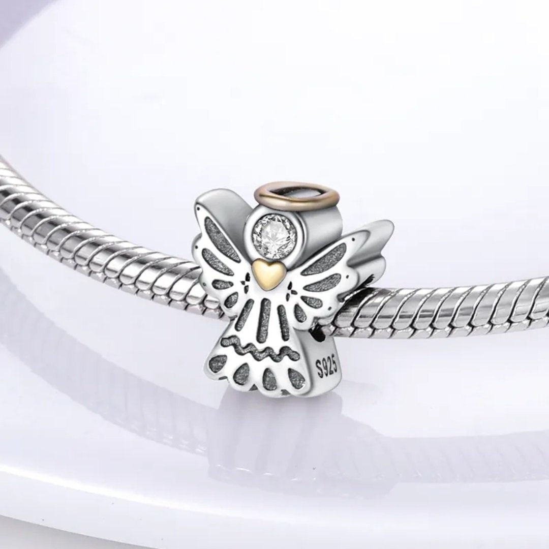 Symbolický prívesok značky Arterer v tvare okrídleného anjelika je vyrobený zo striebra rýdzosti S925 a predstavuje jemný talizman ochrany, pokoja a nádeje. Tvár anjelika zdobí trblietavý zirkón, ktorý dodáva šperku nežný ligot, zatiaľ čo pozlátená aureola spolu so srdiečkom na hrudi vytvára hrejivý kontrast k chladnému lesku striebra. Povrch prívesku kombinuje matné a lesklé detaily, ktoré zvýrazňujú kontúry krídel a šiat a podčiarkujú precízne spracovanie. Tento prívesok je ideálnym sentimentálnym darčekom pre blízku osobu alebo osobným ochranným talizmanom na každý deň. Je určený pre modulárne náramky so štandardným otvorom. Súčasťou balenia je šperková visačka a k dispozícii je aj možnosť darčekového balenia.