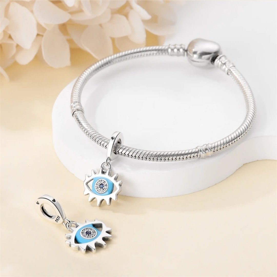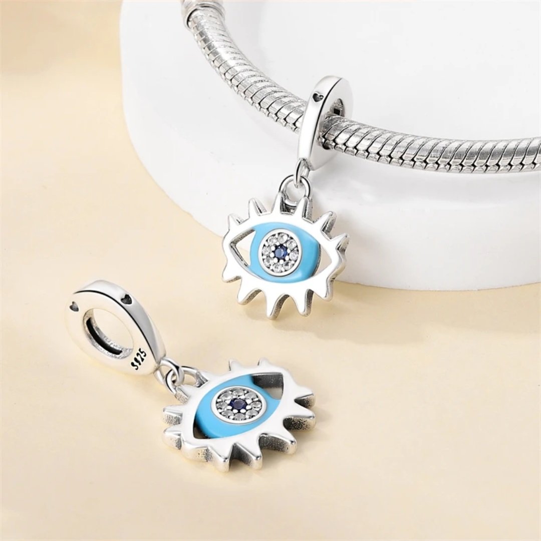 Prívesok Oko proroka zo striebra rýdzosti 925 zobrazuje tradičný ochranný symbol, ktorý je po stáročia považovaný za ochranu pred zlou energiou, závisťou a negatívnymi vplyvmi. Dominantné modré kamene v kombinácii s jemnými kubickými zirkónmi dodávajú šperku žiarivý, elegantný a zároveň mystický vzhľad. Precízne spracovanie garantuje vysokú estetiku aj dlhodobú odolnosť pri každodennom nosení. Tento prívesok pôsobí ako osobný talizman ochrany, šťastia a harmónie a je ideálnym darčekom pre niekoho blízkeho alebo ako symbolické doplnenie vlastného náramku.